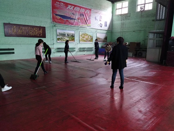 參與活動的20余名同志,分工合作,雖然大家來自不同部門、不同崗位,但爭先恐后、合作默契,清理地面、擦拭健身器材、清潔桌凳?!扒懊娴哪型緜兗佑土?,我們快趕上你們了!”負責拖地的九分公司主任經(jīng)濟師劉彩在后面說道。“這個乒乓球擋布拿抹布擦拭的效果不太好,用外面的高壓水槍沖洗試試吧!”九分公司主任會計師付世芳一邊用抹布擦拭擋布一邊提出自己的合理化建議,“這個辦法好!”九分公司綜合辦公室主任張路平同意道。