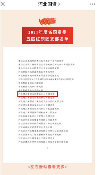 5月上旬,喜訊傳來(lái)!五分公司團(tuán)總支受到河北省國(guó)資委團(tuán)委、省國(guó)資委青聯(lián)聯(lián)合表彰,被評(píng)為“2021年度河北省國(guó)資委五四紅旗團(tuán)支部”。