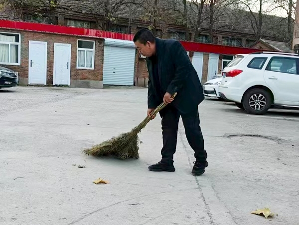 作為兼任分公司院內(nèi)五家單位的警衛(wèi),王亮沒(méi)把“守大門(mén)”當(dāng)成簡(jiǎn)單的值守,而是用“多走一步、多想一層”的主動(dòng),把院區(qū)安全與服務(wù)做得既扎實(shí)又貼心。夜班值守時(shí),他更把“巡查”做成了“安全隱患排查”,仔細(xì)檢查門(mén)窗、消防器材及車(chē)輛停放。有次巡查,他注意到有車(chē)輛未關(guān)車(chē)窗,當(dāng)即聯(lián)系了車(chē)主,確保安全。而每天清晨的打掃,更像是他對(duì)“家”的細(xì)致守護(hù)的延伸。每天六點(diǎn)天剛亮,多數(shù)同事還沒(méi)出門(mén),他已經(jīng)扛著掃帚、拎著簸箕,在機(jī)關(guān)前后院忙活開(kāi)了。落葉飄在花叢里,他就蹲下來(lái)一片一片撿;紙屑卡在磚縫里,他用小夾子慢慢夾出來(lái),連墻角的雜草都要順手拔掉。“咱守著這院兒,不僅要保安全,更要讓大伙兒上班看見(jiàn)清亮的環(huán)境,心里敞亮?!蓖趿恋脑?huà)語(yǔ)樸實(shí)無(wú)華。在他眼里,“警衛(wèi)”不只是一份工作,更是守護(hù)分公司“家”的責(zé)任,這份盡責(zé)與主動(dòng),正是“把院區(qū)當(dāng)自家”最樸素的表達(dá)。