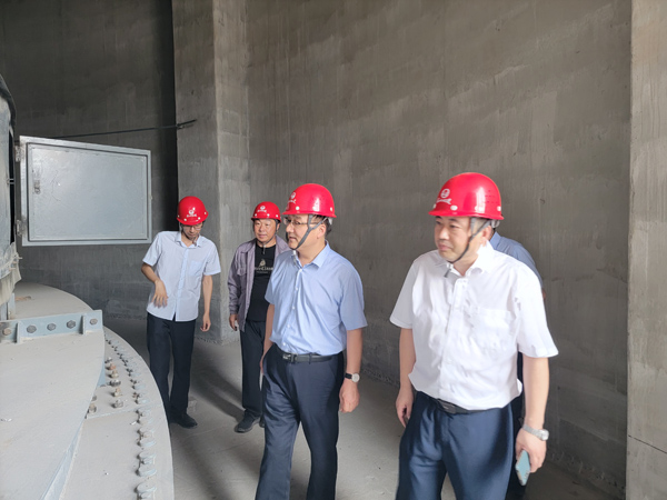一行人首先來到項(xiàng)目后續(xù)承接的60m精煤堆棚工程前,董富強(qiáng)詢問了工程進(jìn)展情況,聽到項(xiàng)目經(jīng)理祁淼匯報(bào)經(jīng)過一個(gè)月?lián)尮?,工程已?jīng)竣工投入使用后,他對(duì)項(xiàng)目做出的成績給予肯定。隨后,一行人來到備煤系統(tǒng)配煤室筒倉工程,作為業(yè)主方高度關(guān)注的施工內(nèi)容,董富強(qiáng)非常關(guān)心工程施工情況,他詳細(xì)詢問了業(yè)主投產(chǎn)節(jié)點(diǎn)要求以及當(dāng)前施工進(jìn)度完成情況,細(xì)心地進(jìn)行完成情況與節(jié)點(diǎn)計(jì)劃的對(duì)比,多次強(qiáng)調(diào)務(wù)必保證工期履約。在了解現(xiàn)場整體施工情況后,針對(duì)倉上鋼結(jié)構(gòu)吊裝等高空作業(yè),董富強(qiáng)特別強(qiáng)調(diào)要毫不松懈抓安全,提出三個(gè)“必須”:一是工人安全防護(hù)措施必須配備到位;二是項(xiàng)目管理人員必須現(xiàn)場旁站管理;三是項(xiàng)目部必須做好后勤保障。他很注重后勤服務(wù)細(xì)節(jié),指出施工現(xiàn)場距離項(xiàng)目部較遠(yuǎn),正值高溫作業(yè),項(xiàng)目部要每天派人運(yùn)送綠豆湯、涼白開、藿香正氣水到施工現(xiàn)場,以防工人中暑。
