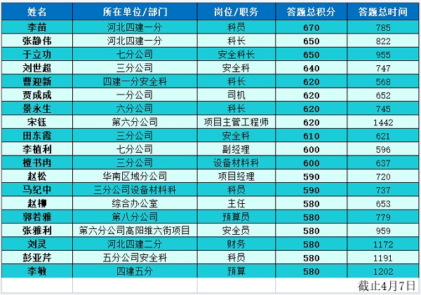 本次活動(dòng)是繼“復(fù)工安全培訓(xùn)第一課”后,公司著眼網(wǎng)絡(luò)平臺(tái)優(yōu)勢(shì)的又一次運(yùn)用。安全管理部和宣傳部結(jié)合職工使用微信較普遍的實(shí)際,聯(lián)合推出了微信答題活動(dòng),以多樣化的方式開展培訓(xùn)教育,提高了“安全培訓(xùn)教育月”活動(dòng)實(shí)效。(安全管理部)