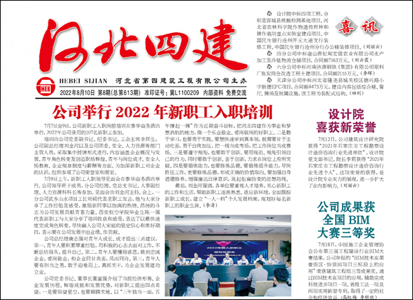 公司黨委立足講好四建故事,傳播四建美譽,發(fā)力宣傳平臺建設(shè),做亮業(yè)績宣傳、做好典型宣傳、做強形象宣傳,發(fā)揮了最大宣傳效能。2022年1-11月份,出版《河北四建》11期,公司網(wǎng)站發(fā)稿比去年同期增加166 %;微信公眾號發(fā)稿期數(shù)和條數(shù),比去年同期增加28%和20%;抖音號發(fā)布視頻數(shù)比去年同期增加137.5%。8月份,公司3個平臺在中施企協(xié)組織的2022年工程建設(shè)企業(yè)文化作品競賽中均獲獎,其中《河北四建》獲得報紙類優(yōu)秀獎、公司網(wǎng)站獲網(wǎng)站類優(yōu)秀獎、公司微信公眾號獲公眾號類優(yōu)秀獎。(黨委宣傳部)