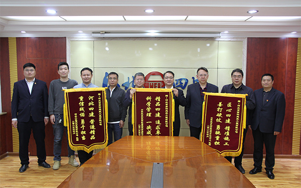 在公司二樓會(huì)議室的贈(zèng)送儀式上,石家莊市職教園區(qū)管理服務(wù)保障中心主任段培杰、基建科科長姚雙虎,石家莊市政府投資代建中心項(xiàng)目負(fù)責(zé)人張綜、河北工程建設(shè)監(jiān)理有限公司項(xiàng)目負(fù)責(zé)人任寒雨分別將寫有“精品四建追求卓越、 科學(xué)管理、一次成優(yōu)”“匠心四建精準(zhǔn)施工、善打硬仗勇挑重?fù)?dān)”“河北四建營造精品、重信踐諾勇于擔(dān)當(dāng)”的錦旗送到公司領(lǐng)導(dǎo)手中。錦旗上熠熠生輝的字跡,既是表達(dá)感謝,也是對(duì)公司建造精品工程的贊揚(yáng)。
