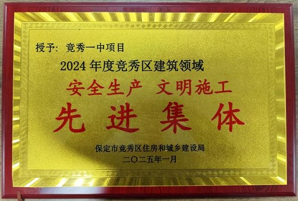 2025年1月14日,在保定市競秀區(qū)住房和城鄉(xiāng)建設(shè)局舉辦的2024年度總結(jié)表彰大會上,六分公司競秀一中項目部被授予“安全生產(chǎn)文明施工先進集體”榮譽稱號。