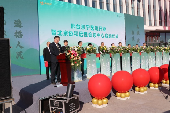儀式現(xiàn)場,彩旗飄揚,流光溢彩,處處洋溢著喜慶氛圍。在熱烈的掌聲與歡呼中,啟用儀式正式拉開帷幕。楊曉明介紹了出席領(lǐng)導(dǎo)和項目使用功能,京寧醫(yī)院常務(wù)副院長孟慶聚隨后登臺致辭。