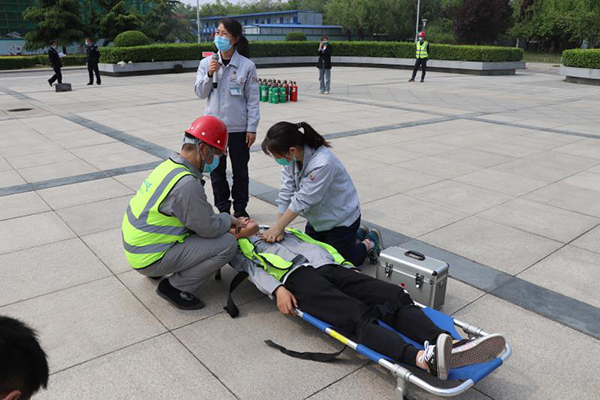 上午10點(diǎn),消防救援支隊(duì)講解員對全體人員進(jìn)行消防安全知識(shí)培訓(xùn),詳細(xì)講解了防煙面罩正確佩戴方法、疏散逃生要領(lǐng),以及滅火器的使用方法和注意事項(xiàng)。10點(diǎn)半左右,演練正式開始,施工現(xiàn)場三區(qū)二層濃煙滾滾,“著火了,著火了¨¨¨”項(xiàng)目安全員在現(xiàn)場巡查時(shí)發(fā)現(xiàn)火情高聲呼喊,周圍施工人員迅速拿滅火器進(jìn)行滅火,項(xiàng)目經(jīng)理張玉賓接到險(xiǎn)情后馬上通知義務(wù)消防隊(duì)員滅火并組織緊急疏散。大家用濕毛巾捂住口鼻,俯身低頭按照演練逃生路線快速從現(xiàn)場撤離到演練集合區(qū)。在大家撤離火災(zāi)現(xiàn)場的同時(shí),救援組孫杰、楊克、董擁軍等人把傷員抬到通風(fēng)處,他們在醫(yī)療救護(hù)組的指導(dǎo)下,用雙手拍打傷者雙肩并呼叫他的名字、用觸摸頸動(dòng)脈等方法斷傷者是否喪失意識(shí),并進(jìn)行心肺復(fù)蘇。心肺復(fù)蘇演練時(shí),按壓胸部是最有效也是最常用的辦法,施救人員首先在傷者兩乳頭連線中間,胸骨中下三分之一處找準(zhǔn)按壓點(diǎn),然后用手掌根部緊貼傷者胸部,兩手重疊,五指相扣,手指翹起,肘關(guān)節(jié)伸直,用上身重量垂直下壓30次,經(jīng)過救治傷者最終蘇醒,整個(gè)搶救過程有條不紊,最后藁城區(qū)消防救援大隊(duì)長張海寧對應(yīng)急預(yù)案演練進(jìn)行了點(diǎn)評,此次火災(zāi)應(yīng)急預(yù)案演練圓滿結(jié)束。