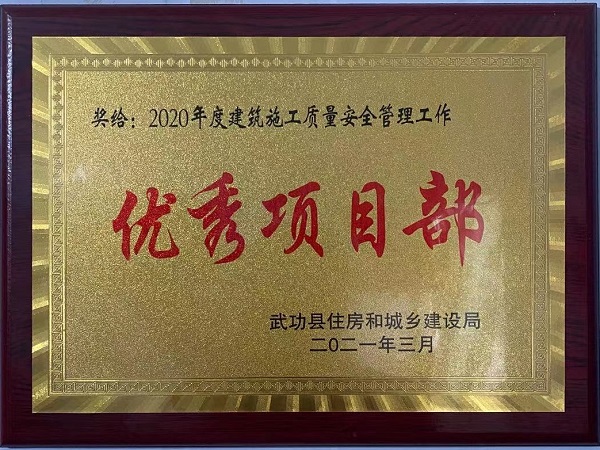 4月25日,武功縣住房和城鄉(xiāng)建設局表彰了2020年度建筑施工、房地產(chǎn)開發(fā)和物業(yè)管理工作先進集體和先進個人,四分公司陜西金沙河項目榮獲“2020年度建筑施工質(zhì)量安全管理工作優(yōu)秀項目部”稱號。