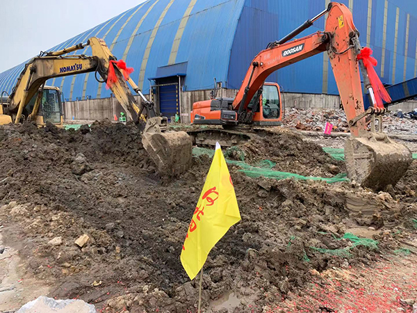 5月2日和3日連續(xù)降雨,打樁后產(chǎn)生的淤泥經(jīng)大雨沖刷散布現(xiàn)場各處,雨后項(xiàng)目全體人員開始清淤工作,因環(huán)保要求白天不宜外運(yùn)出場,管理人員便夜間加班“作戰(zhàn)”,爭分奪秒為后續(xù)工作創(chuàng)造工作面。白天平整場地、夜間倒運(yùn)淤泥,經(jīng)過項(xiàng)目全體人員的連日奮戰(zhàn),使項(xiàng)目具備了開工條件。