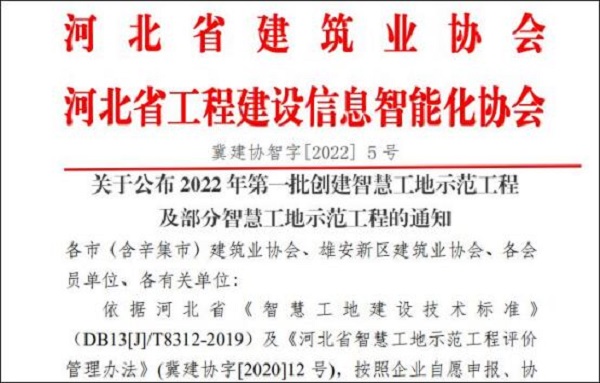 5月29日,河北省建筑業(yè)協(xié)會與河北省工程建設(shè)信息智能化協(xié)會聯(lián)合發(fā)布了2022年河北省第一批創(chuàng)建智慧工地示范工程名單,由二分公司承建的井陘縣醫(yī)院救治能力提升項目獲得了河北省智慧工地最高級別——三星級示范工地的榮譽(yù)。