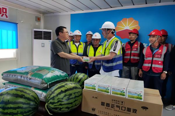 因近日持續(xù)高溫,現(xiàn)場的施工環(huán)境給堅守一線的施工人員帶來了嚴峻“烤”驗,也時刻牽動著分公司領導的心。6月12日,分公司黨支部書記、工會主席臧聯(lián)合到項目部詳細了解一線人員工作和生活情況,檢查消防和防暑降溫工作,為大家發(fā)放了西瓜、綠豆、藿香正氣口服液等防暑物品,為高溫下堅守崗位的項目職工帶來了“娘家人”的問候和關懷,并叮囑大家要在保障自身安全前提下完成好項目工作。