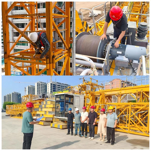 說干就干!8月6日上午,在分公司設(shè)備堆放場及使用現(xiàn)場,排查工作全面展開?,F(xiàn)場即戰(zhàn)場,這里沒有旁觀者,只有建筑起重機(jī)械安全的“偵察兵”與“守護(hù)者”。經(jīng)驗豐富的設(shè)備經(jīng)營管理科科長郭新輝目光如炬:“停!這顆螺栓有松動跡象,必須立刻緊固!”話音未落,技術(shù)骨干李進(jìn)康已經(jīng)遞上工具包,配合默契,郭新輝熟練精準(zhǔn)地完成了加固。